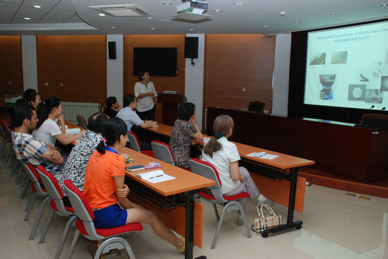 Gladys Alexandre教授长期从事土壤固氮菌信号传导机制及其与植物互作机理的研究。在国际上首次提出信号传导蛋白介导的化学趋化与细胞能量动态变化相偶联,获得了高效固氮的工程菌株。目前担任AEM, J. Bacteriol.等多个SCI刊物的编委。访问期间,Gladys Alexandre教授与微生物功能基因组创新团队的师生进行了深入交流,并就今后进一步的合作交流达成共识。