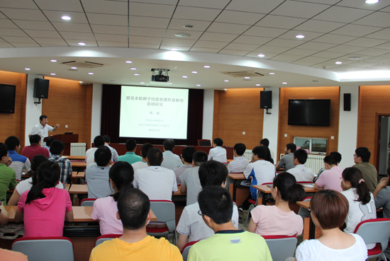 6月26日上午,应林敏所长的邀请,中国农业科学院水稻研究所水稻生物学国家重点实验室主任钱前研究员来我所访问交流。钱前研究员做了题为“提高水稻种子纯度的遗传育种学基础研究”的学术报告,结合他的研究团队近年来的研究进展,从水稻育种中形态标记应用、抗除草剂基因及杂种致死基因应用等几个方面进行了深入浅出的介绍。 报告会由林敏所长主持,我所科研人员、研究生等100余人参加了会议。与会者对专家的报告显示出浓厚兴趣,与钱前研究员围绕报告内容和相关问题进行了深入的交流与探讨。