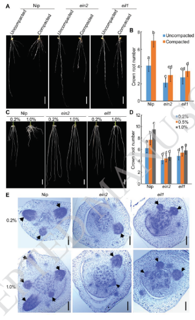 crown root, soil compaction, OsEIL1, OsWOX11, grain yield, rice