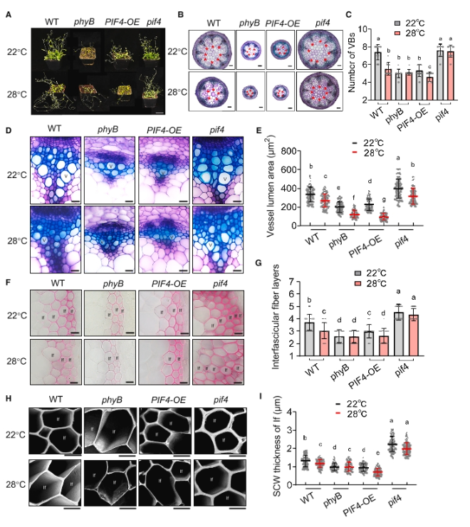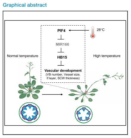 HD-ZIPIII transcription factor;;high temperature;;miR166;;PIF4;;secondary cell wall;;stem lodging;;vascular development