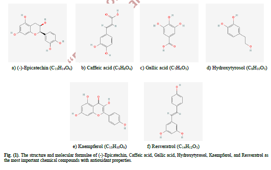 most important chemical compounds with antioxidant properties. Rosmarinic acid, Caffeic acid, Carnosol, P-Coumaric acid, Carnosic acid, Luteolin, Apigenin, and Kaempferol are the major chemical compounds with antiviral properties. Curcumin, Colchicine, Resveratrol, Capsaicin, (-)-Epigallocatechin,