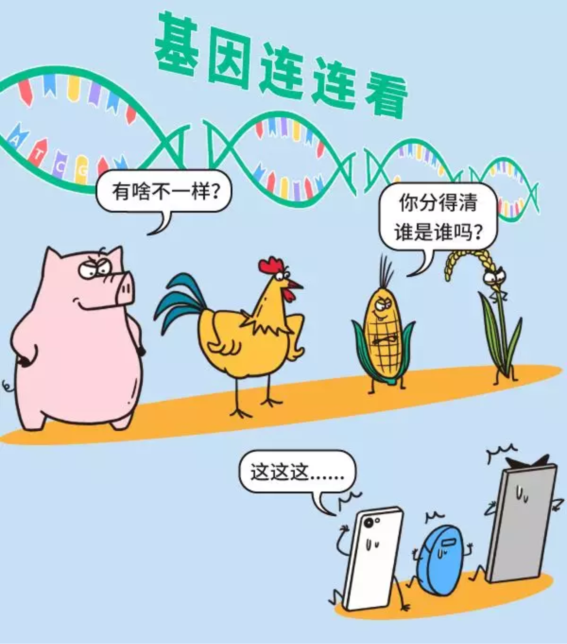 你看,猪鸡水稻玉米我们已经,吃了成百上千年了,其中包含成千上万种,A、T、C、G排列成的基因。