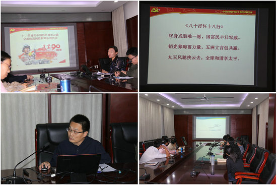 会上,第三支部党员、所党委书记姜梅林同志为支部全体党员上了一堂生动活泼、别具特色的党课。党课内容主要围绕党的十九大报告的第十章至第十三章内容展开,深入浅出的介绍了十九大报告四个章节的精髓。报告中,姜梅林书记通过对中国屈辱的近现代史、人民军队的成立和成长之路以及当前风云变幻国际形势的细致分析,重点强调了“坚持走中国特色强军之路,全面推进国防和军队现代化”的历史必然和重要意义。核心价值观,承载着一个民族、一个国家的精神追求。姜书记通过老一辈革命家在抗日战争、解放战争和抗美援朝中英雄事迹的简介,完美的对老一辈革命家投身革命和为国家无私奉献一生的崇高精神进行了阐述,并展示了其对国家富强、人民安康和全球构建人类命运共同体的美好祝愿。