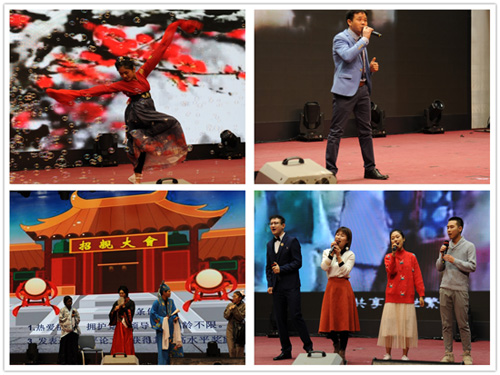 林敏所长和姜梅林书记共致新年贺辞,代表所领导向大家致以节日的问候和良好的祝愿。林所长说,过去的一年里,全所职工齐心协力、开拓创新,圆满完成了全年各项工作,希望在新的一年里工作能够再接再厉,随后欢快的开场舞正式拉开了联谊会的序幕,研究室主任带头上台表演自编自演的《三句半》,以幽默的风格述说了过去一年院所乃至国家的大事小情,赢得阵阵喝彩。与改革开放同龄的青年才俊一曲合唱《年轻的朋友来相会》,把大家的思绪带回了40年前,更直观地感受到了改革开放带给国家及个人翻天覆地的变化。紧接着,《生物所新闻播报》、《剑术古筝》、《吉他弹唱》、《唐伯虎点秋香》、《歌曲联唱》、《荧光舞》、《惊鸿舞》等各个节目精彩纷呈,中间穿插抽奖活动和游戏互动更是将联欢会推向了一个又一个的高潮。欢笑声、喝彩声、鼓掌声此起彼伏、久久回荡,整个会场仿佛一片欢乐的海洋。联谊会最后在师生合唱《明天会更好》的歌声中落下了帷幕。