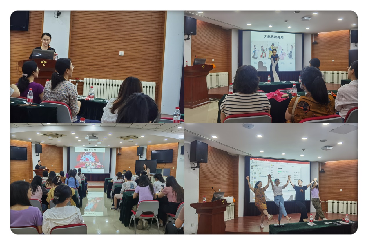 牛星老师毕业于北京舞蹈学院,她从专业视角通过图片、视频和动作亲身示范等多种形式介绍了不同类别舞蹈的风格和特点、舞蹈语言的表达,以及舞蹈的社会功能和学习方法,让大家在轻松愉快的氛围中了解不同地域风格迥异的舞蹈形式和传统艺术的代代传承。丰富的内容、精彩的讲解以及牛老师的动人的舞姿,让大家在端午节来临之际切身感受了传统文化的博大精深和民族舞蹈的艺术感染力;牛星老师的亲临施教也鼓舞在场的老师和同学们跃跃欲试,大家走上台,在牛老师的带领下一同起舞,感受舞蹈带来的快乐、体会研究所大家庭的温暖。