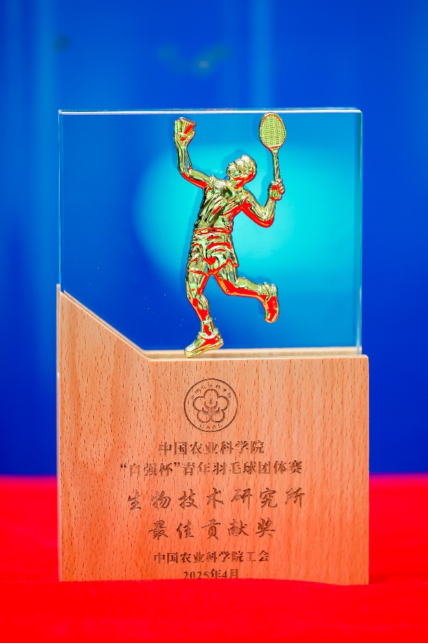 生物所工会荣获“最佳贡献奖”,作为中国农科院羽毛球俱乐部的依托单位,所工会为此次比赛顺利进行做了大量的准备工作,积极协调动员各单位报名参加,并多次召开工会委员会,从裁判到后勤保障都做到事无巨细提前筹划。比赛现场,工会委员及志愿者同学们不辞辛苦为运动员服务,做好后勤保障,受到了各参赛队的一致好评,为生物所争得了集体荣誉。今后,生物所将再接再厉,为提高全院羽毛球运动的普及率和影响力,拓展羽毛球运动的受众群体,丰富职工文化生活做出更大贡献。