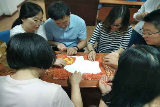 为进一步加强党史学习教育,6月16日,生物所第一、第二党支部联合开展“重温党史,制作党旗”主题党日活动。两个党支部在繁忙科研工作之余,组织党员重温了中国共产党党旗的由来,结合团队研究特点,利用创制的营养强化型玉米籽粒制作了党旗,表达对党的忠诚和热爱。