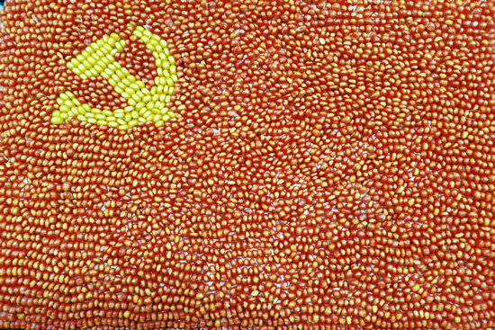 中国共产党党旗是中国共产党的象征和标志,红色象征革命,黄色的锤头、镰刀代表工人和农民的劳动工具,象征着中国共产党是中国工人阶级的先锋队,代表着广大人民群众的利益。为了开好本次主题党日活动,两个党支部党员提早谋划,精心准备,分工协作,积极参与党旗制作。第一党支部精心挑选了鲜亮的黄色玉米用于镰刀锤头的制作,第二党支部提供的鲜红色虾青素玉米籽粒用于铺摆红色党旗。有的党员负责挑选籽粒,有的党员负责分头摆放,大家齐心协力,历时两个半小时,一面鲜艳的党旗呈现在大家眼前。