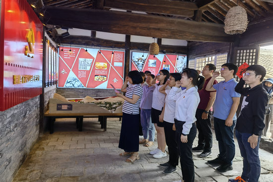 两个支部的党员同志参观了记载当地革命历史的红色文化展室和红色标语墙,走访了抗日战争时期被日军烧毁的房屋遗址,并在第五党支部书记张锐同志的带领下庄严地重温了入党誓词,深刻学习了中华儿女大无畏、无私奉献、艰苦奋斗的精神。