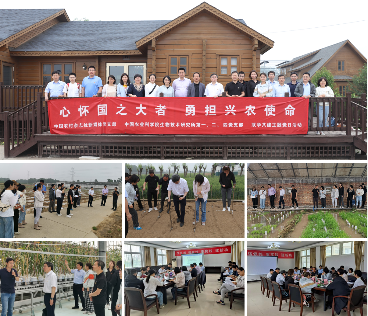 为深入开展学习贯彻习近平新时代中国特色社会主义思想主题教育,5月19日,生物所第一、二、四党支部与中国农村杂志社新媒体党支部以“心怀国之大者,勇担兴农使命”为主题,组织党员赴廊坊生物育种综合试验基地实地调研和交流研讨,联合开展联学共建主题党日活动。中国农村杂志社党委副书记、总编辑李永生,新媒体党支部书记郭平稳,生物所副所长、纪委书记郭静利参加活动。