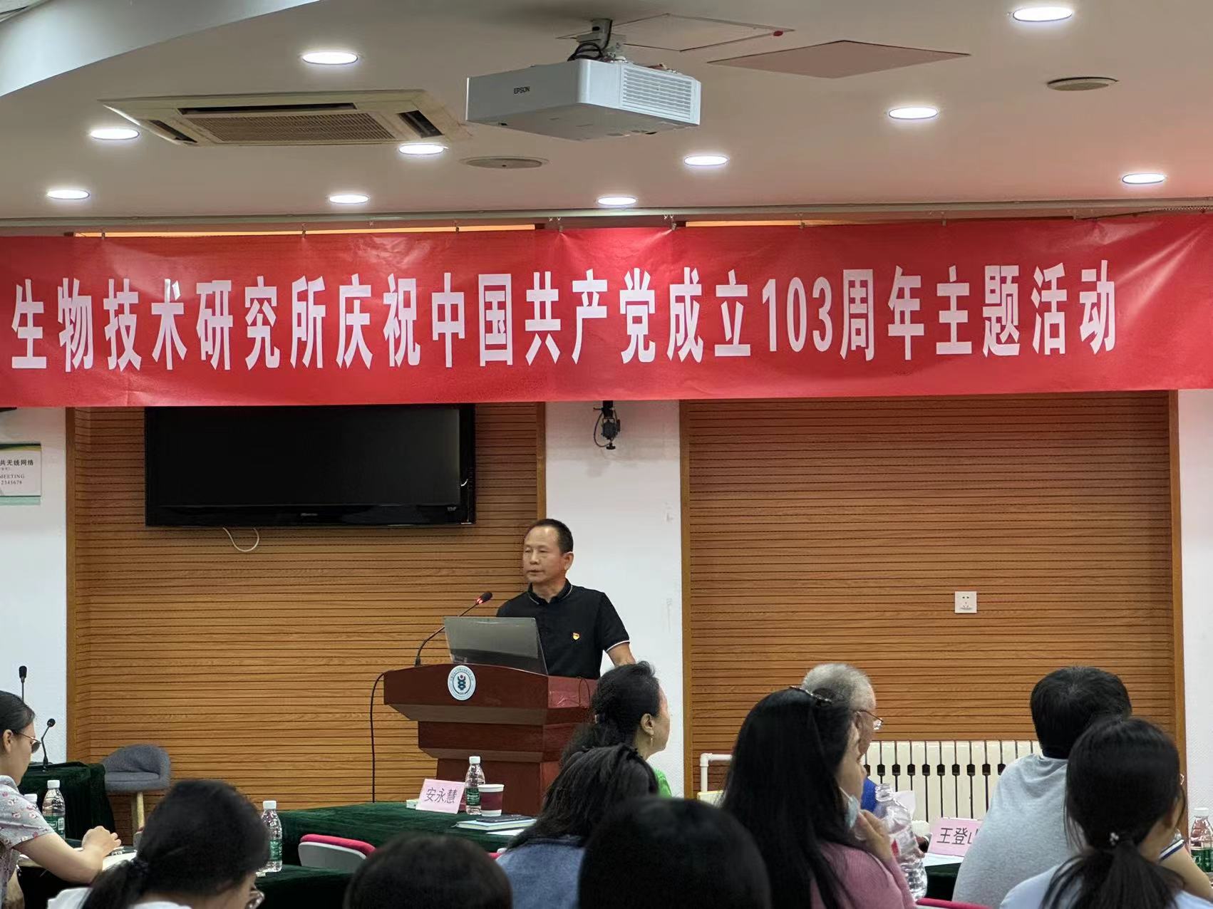 6月27日,生物所举办庆祝中国共产党成立103周年暨“四好”党员表彰大会,全所党员干部齐聚一堂,庆祝党的生日。党委书记李红康主持活动,所领导班子成员、党委委员、处级干部、全所党员参加活动。