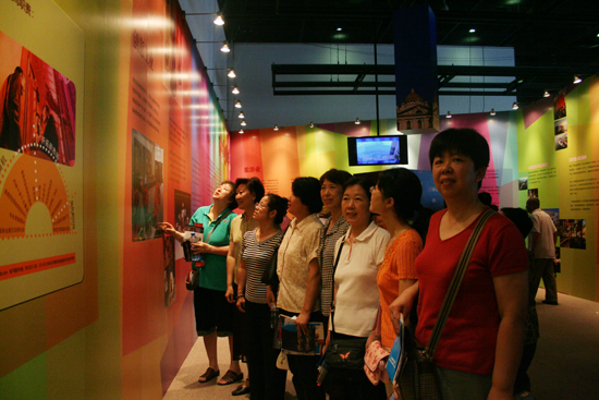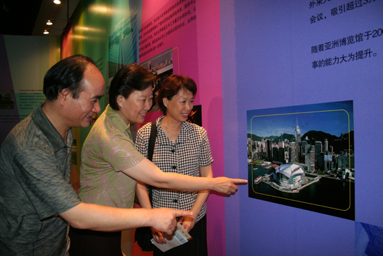 该展览共分为香港回归及"一国两制"、经济发展、香港与内地的互利合作、亚洲国际都会、绿色香港、文化与体育、香港的未来发展和香港邮票展八个部分,为我们全方位多角度地展示了香港回归十年来的成就。丰富有趣的形式令大家在各个展位都驻足许久,有些到过香港的同志有感于此次展览的意义非凡,仍忍不住在展图前与画中的香港合影。