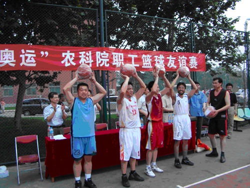 6月20日下午,“迎奥运”农科院职工篮球友谊赛进行了最后一轮的较量。我所男篮凭借加时赛超出对手1分险胜劲旅植保所男篮,夺得本次友谊赛的季军,院机关联队和农产品加工所分获冠、亚军。院人事局贾连奇局长兴致勃勃地为冠亚军争夺赛开球,监审局局长张逐陈、院人事局副局长郝志强、院机关党委副书记舒文华、院工会常务副主席胡海涛、宋恒春及各参赛队的所长、书记等领导亲临现场饶有兴趣地观看了比赛,并在赛后的发奖仪式上为各参赛队颁发奖杯和奖品。(信息提供:张维)