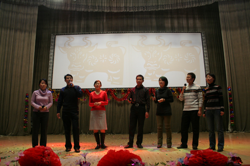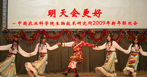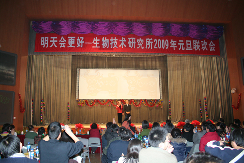 喜庆的歌舞拉开了联欢晚会的大幕,在热烈地掌声中,林敏所长代表所领导致辞。林所长全面回顾了我所2008年取得的可喜成绩,展望了我所2009年美好的未来,并向全所师生致以新年的问候和祝福。林所长睿智、诙谐的话语深深感染在场的每一个人,激发了全所师生爱所奉献的热情,坚定了生物所的明天会更加美好的信心。
