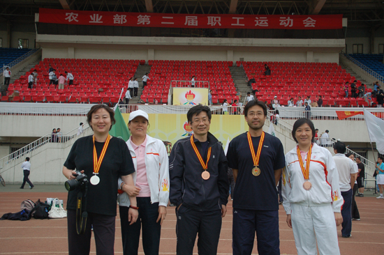 经过激烈的竞赛,我院获得团体总分第一名,并荣获农业部颁发的“特别贡献奖”。我所运动员在本届运动会中也取得了骄人的成绩:陈明勇夺1金2铜3枚奖牌;陆伟夺得1金1银2枚奖牌;宋斌女子乙组托球跑第四名;张维女子丙组铅球第六名;伍宁丰女子乙组插旗跑第七名;王磊男子乙组1500米第八名;张春义、张锐虽然与奖牌无缘,但他们为实现梦想永不言败的乐观豪情,激励着生物所其他运动员继续拼搏。工作中,他们用智慧攻克了一个又一个科学难题,硕果累累;运动场上,他们挥洒汗水演绎了一个又一个精彩的瞬间,为我院、我所争光。让我们把掌声和敬意送给他们,他们是生物所的骄傲!
