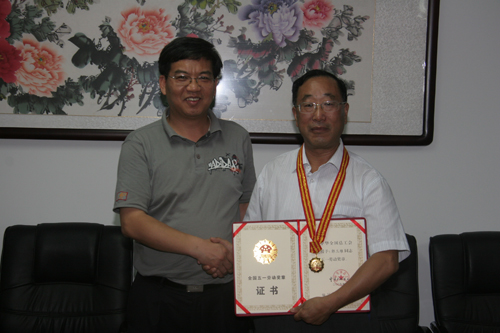 陶永平书记首先代表农业部向郭三堆研究员表示衷心的祝贺。陶永平同志讲,全国五一劳动奖章,是国家对劳动者的最高褒奖,今年中央国家机关仅有2人获此特荣,郭三堆研究员经过层层筛选胜出,荣获全国五一劳动奖章,不仅是他本人的光荣和农科院的光荣,同时也是中央国家机关和农业战线的光荣。他指出,郭三堆研究员在抗虫棉的研制和产业化方面成绩卓著,对于提高我国棉花产量,?;ど肪撤⒒又卮笞饔?,获得了巨大经济和社会效益,今天的全国五一劳动奖章,就是对郭三堆研究员的充分肯定的褒扬。他表示相信在农业部、中国农科院和生物技术所的正确领导下,郭三堆研究员一定会能够更好地发挥科技领军人物的示范作用,引领更多的科研人才和团队,攻克更多的难关,取得更大的成绩,为我国农业可持续发展做出更大的贡献。他还希望在广大农业科研人员中广泛宣传郭三堆研究员的先进事迹,教育引导科研人员认真学习郭三堆研究员的先进事迹和优秀的科研品质,培养造就出更多郭三堆式的农业科研人才。随后,陶书记亲自为郭三堆研究员颁发了获奖证书和证章。