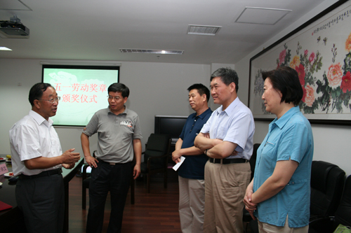 2009年6月1日下午,农业部直属机关党委书记陶永平一行专程到我院举行五一劳动奖章颁奖仪式,为生物技术研究所荣获全国五一劳动奖章的郭三堆研究员和作物科学研究所荣获中央国家机关五一劳动奖章的肖世和颁发证书和证章。我院党组副书记罗炳文,直属机关党委常务副书记高淑君,机关党委副书记林定根,人事局副局长郝志强,院工会副主席胡海涛,生物技术所党委书记田小薇,作科所副所长齐秀改等参加了颁奖仪式。颁奖仪式由直属机关党委常务副书记高淑君主持。