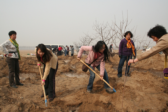 初春三月,万物复苏,春意盎然。在2011年植树节之际,为了更好的在广大党员职工中进行“美化生态园区,创建和谐自然”主题教育,丰富党员实践生活,我所第一党支部创新活动形式,于3月13日上午组织全体党员和入党积极分子赴廊坊万庄试验基地开展建设绿色生态园区植树活动。 在活动现场,支部全体党员们和入党积极分子热情高涨,纷纷挽起袖子投入到劳动当中。大家分工合作,有的挥动锄头挖坑,有的扶树苗,有的细心培土,有的忙于浇水,经过大家的共同努力,一排排树苗被整齐划一的植入了土中。虽然每个人的身上都沾满了泥土,脸上都冒着汗珠,但是大家干得热火朝天,脸上都洋溢着灿烂的笑容,一派欢乐祥和的景象?;疃崾?,党员们还认领了树苗,并表示一定要把树苗种好养大,为我所综合实验、示范科技展示园建设增添一抹新绿。 通过这次植树活动,支部党员们近距离体验了自然之美、劳动之美,用激情和汗水为我所廊坊园区播种了绿色和希望,在放松心情的同时也进一步增强了环保意识和家园意识,让大家有机会充分展示我所党员热爱科研、绿化家园、造福自然的美好心愿,并用实际行动为党的90岁生日献礼。