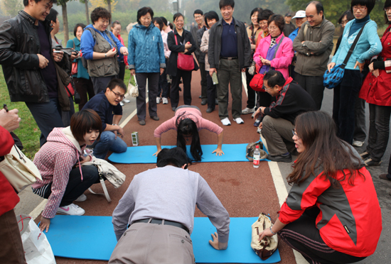 金秋十月,秋高气爽,红的枫叶、黄的银杏、绿的杨树把国家奥林匹克公园点缀的色彩斑斓,分外美丽。10月21日上午,所工会组织职工在北京奥林匹克公园仰山脚下举行了别开生面的健身、游乐活动。首先举行了男女组的俯卧撑、仰卧起坐比赛,24位职工参加了角逐,陆伟的独脚俯卧撑引来现场观众一片惊呼,巾帼不让须眉,女职工的仰卧起坐也赢得了阵阵喝彩,最后张洪岭副所长与所工会副主席宋斌的俯卧撑大PK将比赛推向了高潮。在大家的欢呼声中,所党委书记田小薇、党委副书记孙丽萍分别为男女组冠军周焘和蔡晶晶颁奖。随后职工们沿公园的健走道开始了5公里健身行走,大家一边欣赏着公园里五彩的美景,一边愉悦地行走在大道上,欢声笑语此起彼伏。笑声中,大家彼此的心贴的更近。行走中,职工们的身心得到了一次彻底的放松。 这次活动得到了所领导和全所职工的大力支持,为奋战在科研一线的科研人员提供了一次交流沟通的平台,让大家在活动中锻炼了身体,联络了感情,增进了友谊。大家纷纷表示,将以更加饱满的热情投入到今后的科研工作中,为促进我所各项事业健康发展不断注入新的活力。