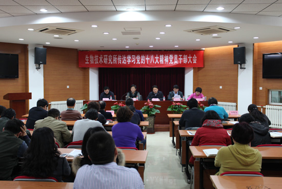 11月27日下午,我所召开党员干部大会,传达学习党的十八大文件精神,并分别传达了农业部韩长赋部长和农业部副部长、我院李家洋院长、院党组陈萌山书记在部、院传达学习十八大精神党员干部大会上的讲话精神?;嵋橛伤澄榧峭跸僦鞒?。