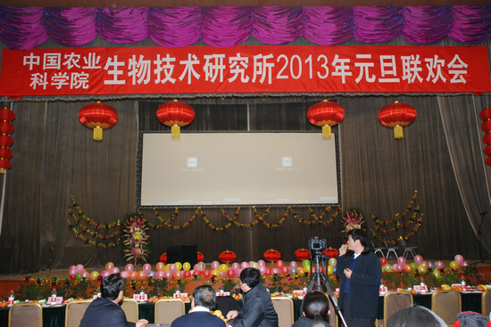 2012年12月27日生物所各级领导、职工和研究生200多人欢聚一堂,在北京郁金香温泉酒店举行了2013年元旦联欢会。