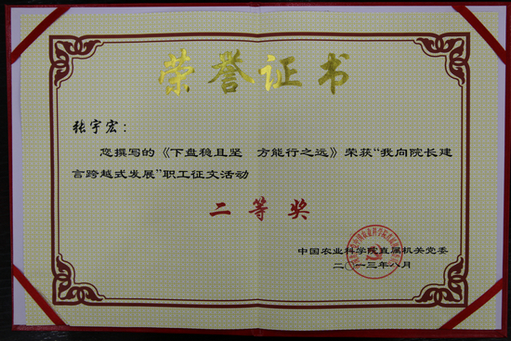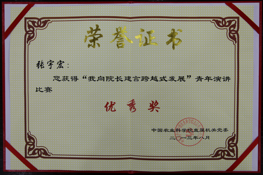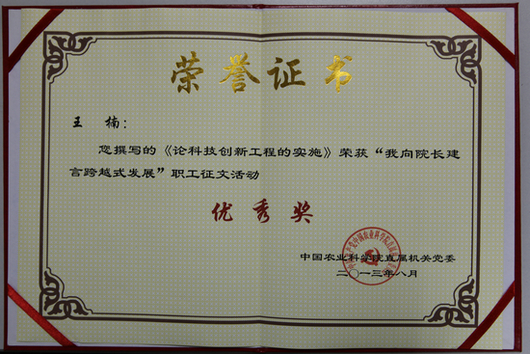 张宇宏、王楠两位同志在征文演讲活动中紧扣活动主题,结合工作实际,通过征文的形式积极为我院跨越发展建言献策,阐释了自己对“农科梦”的认识与理解,抒发了对农业科研事业的热爱和对现代农业科研院所未来发展的美好憧憬,展现了我所青年奋发向上的精神风貌。希望全所青年职工以此次活动为契机,凝心聚力,锐意进取,拼搏创新,为推进现代院所建设、实现研究所跨越发展贡献自己的力量!