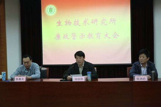 路铁刚首先传达了余欣荣副部长在农业部廉政警示教育大会上所做的《笃行“三严三实”,做到勤政廉政》的重要讲话。在观看完《伪装的外衣——沈广贪污案件警示录》警示教育片后,参会人员纷纷表示,以前总觉得贪污腐败离我们很远,但这一发生在我们身边的真实案例,给大家敲响了警钟。从沈广案可以看出,不论职务高低和权力大小,都有可能导致贪污腐败的发生。该案件也进一步提示我们不仅要建立健全规章制度,更须狠抓制度的落实执行,也只有这样才能堵住漏洞,杜绝此类案件的再次发生。专题讨论中,路铁刚强调,今年是我所实施科技创新工程的第一年,尤其要加强科研经费的管理监督,确??蒲芯训墓娣妒褂茫惺堤岣呖蒲芯训氖褂眯?。