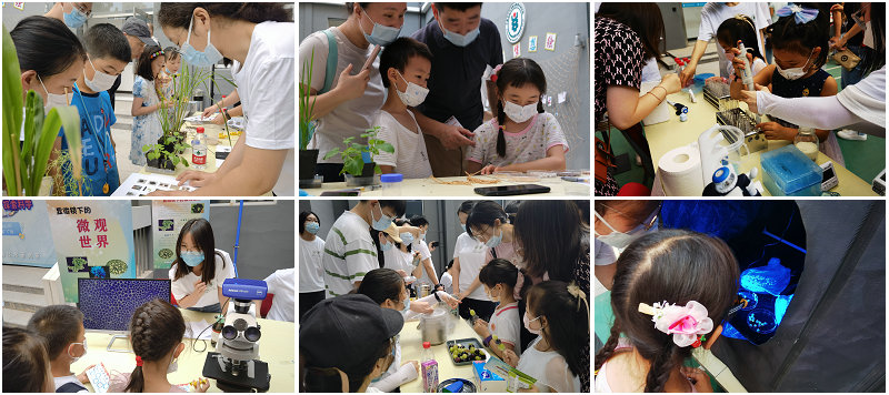 “让探索开启美好未来”。“科普集市游”上6个实验游戏摊位各显身手,吸引了众多参观者,受到孩子们的热烈欢迎?!笆吨肿颖嬷参铩钡恼固ㄇ埃⒆用鞘侗鸶髦肿魑锏闹肿雍椭仓?,认识主要农作物、了解作物生长知识;“显微镜下的世界”带领孩子们进入微观世界,观察细菌和真菌的细胞形态,从平板上观察微生物菌落,真切探知微生物和我们生活的关系?!白约赫鄢鯠NA”的摊位上,老师带领孩子一边巧手折叠出DNA,一边讲述DNA双螺旋的故事;”植物会发光”小实验中,可以在暗箱内观察表达荧光蛋白的植物种子;通过“谁动了我的奶酪”小实验可以现场制作奶酪,亲眼见证凝乳酶的作用,更了解酶制剂的特别;“10秒香蕉冰淇凌”展示液氮速冻,让大家了解速冻食品保鲜的原理,还能品尝到不一般的香蕉冰淇淋。小小实验,既体会动手的乐趣,更能感受生物科技神奇。