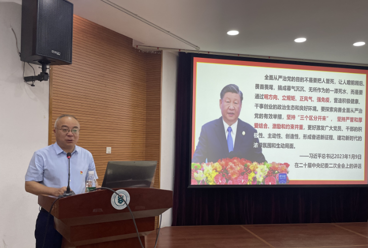 王登山总结了书记讲党课的内容,并结合身边的案例,教育全体党员坚守党的纪律红线,知行知止、令行禁止,让权力在阳光下运行,为推动研究所高质量发展贡献力量。