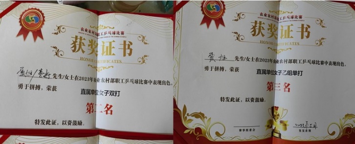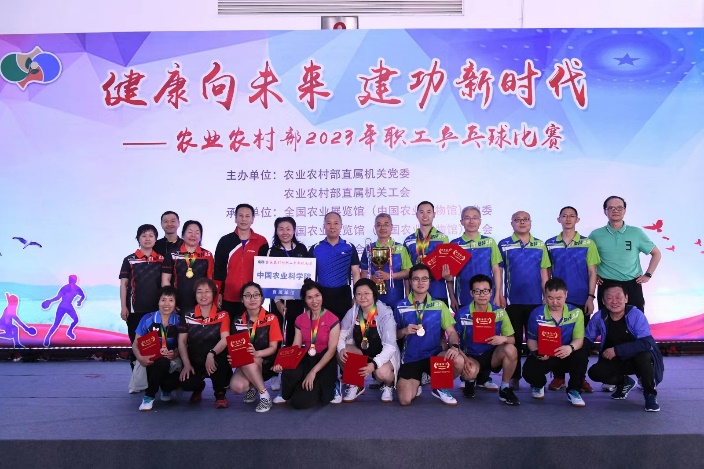 近日,农业农村部 “健康向未来 建功新时代” 2023年职工乒乓球比赛在农业展览馆落下帷幕。比赛由农业农村部直属机关党委、农业农村部直属机关工会主办,共60家单位约700人参加了比赛。中国农业科学院乒乓球俱乐部经过前期选拔,选派了26名运动员参赛,我所裴新梧和贾旭光荣入选院队为中国农业科学院代表队获得冠军做出了贡献。贾旭同时荣获45岁以下女双亚军和女单第三名的好成绩,为农科院和生物所赢得了荣誉。