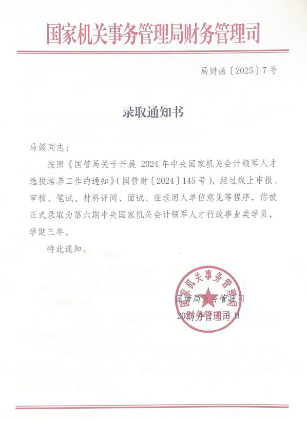 国管局财务管理司公布了《2024年中央国家机关会计领军人才培养项目入选名单》,我所财务资产管理处马媛同志成功入选。