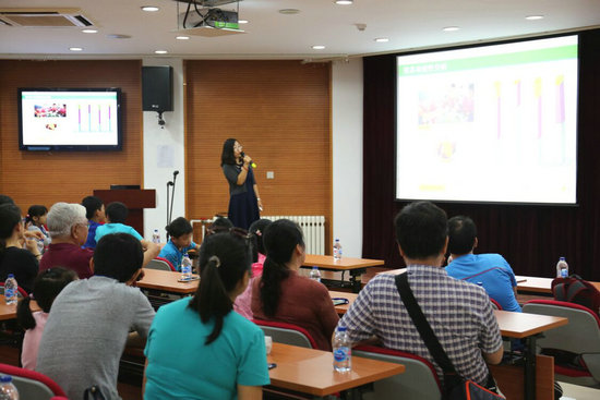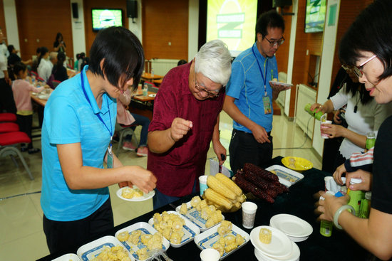 活动现场,徐妙云研究员以《微营养 大健康》为题做了科普报告,从营养素的重要性、营养强化玉米的研制及应用开发等方面重点介绍了高叶酸玉米和高花青素玉米的培养及营养价值,并请参与活动的大人和孩子们现场品尝了这些产品。