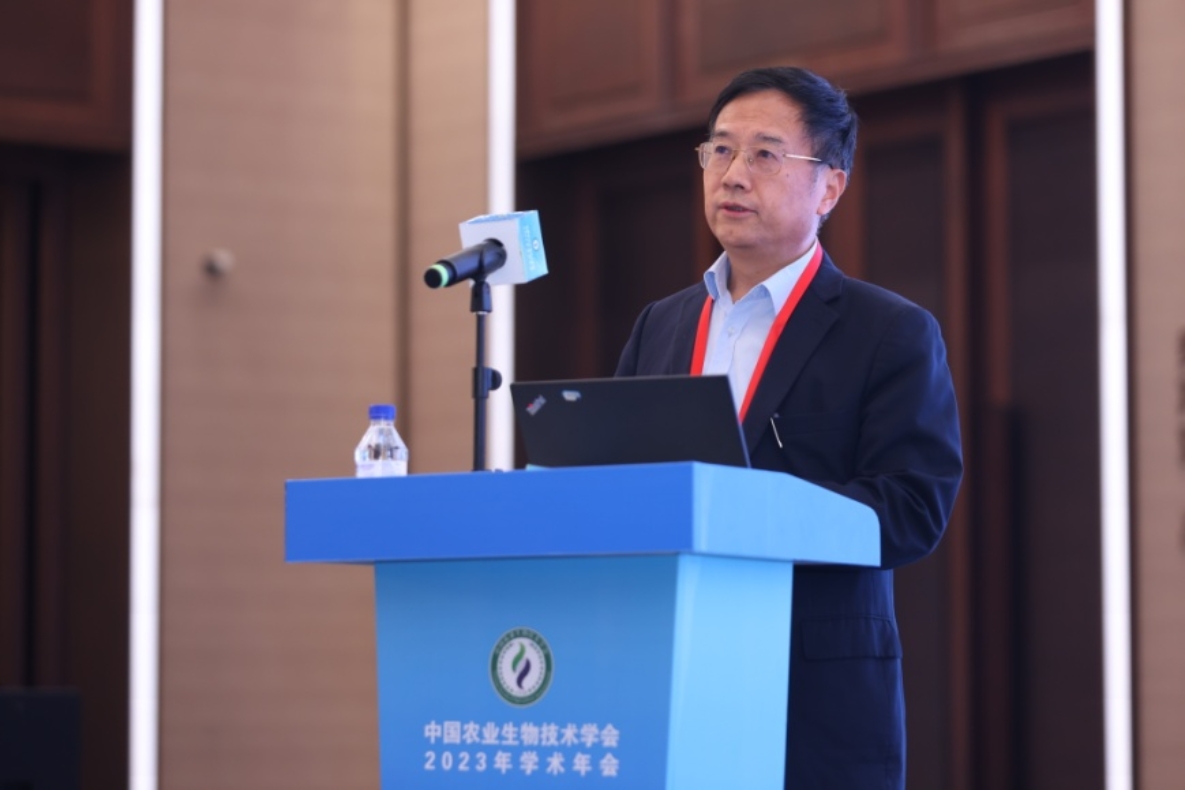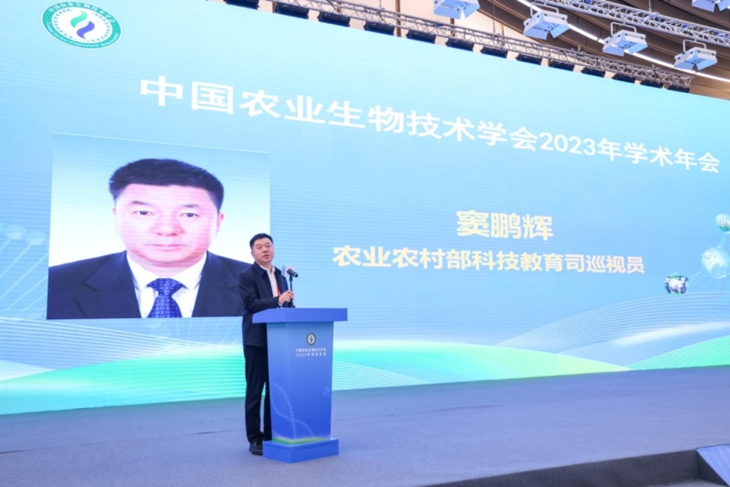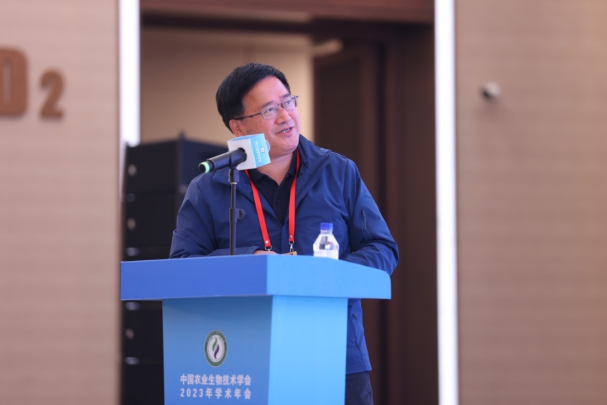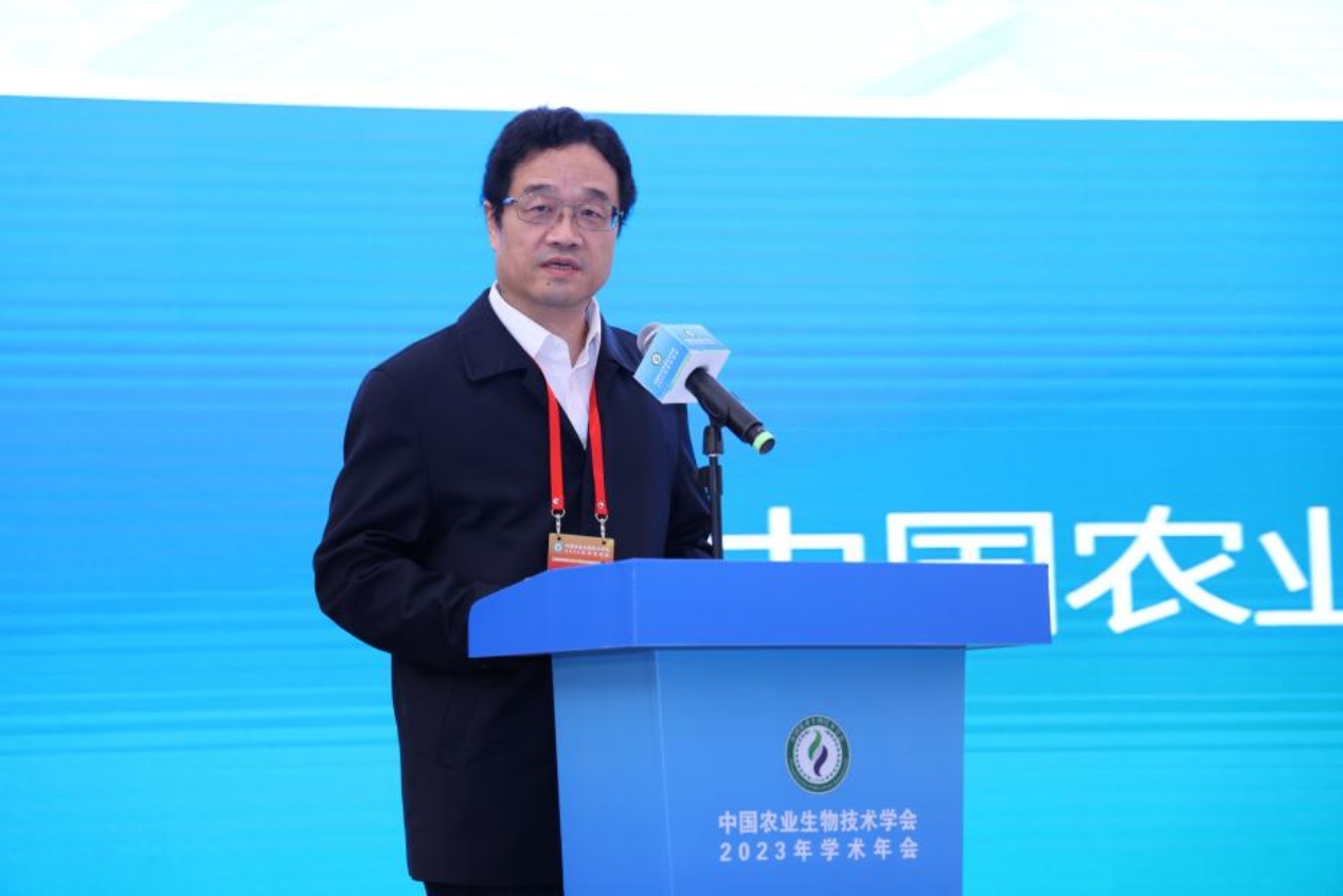 窦鹏辉在讲话时强调,当前我国农业规模化、集约化及产业化发展水平不断提升,农产品供给呈现数量增加与品种丰富的双重趋势。农业生物技术已成为新时期农业科技革命的强大推动力和新的经济增长点,将为我国传统农业向现代农业转变,解决新时期面临的粮食安全、资源约束等问题发挥至关重要的作用。他强调,在未来的科技创新中,需要进一步着眼于实现高水平科技自立自强,加速突破前沿性颠覆性技术,攻克关键领域卡点;着眼于构建新型举国体制,加速培育壮大生物经济领域的龙头企业;着眼于协同推进生物育种的产业化发展,促进农业强国的建设。他希望,通过此次会议,学会与科研单位、高等院校、同行企业进一步加强合作交流与协同攻关,落实国家在种业创新及生物育种产业化应用上的战略部署,推动农业生物技术创新与产业发展。