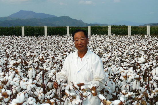郭三堆研究员在中国农业科学院从事生物学研究37年,参与了生物所的建立,亲历了生物所成长和发展,见证了生物所创业和辉煌。他在国际上率先通过两种Bt基因融合,人工合成新型抗虫基因,育成具有自主知识产权的国产转基因抗虫棉,实现从0到1的突破,使中国成为继美国之后全球第二个拥有抗虫棉自主知识产权的国家。近年来,郭三堆研究员率领的科研团队在双价抗虫棉、三系杂交抗虫棉、新型高抗除草剂棉和优质高产多抗棉花育种上取得重大进展。在全国棉花育种家和企业家的共同努力下,国产抗虫棉打破了跨国公司的技术垄断,市场占有率达到98%以上,育成抗虫棉新品种197个,累计推广5.6亿亩,减少农药用量65万吨,带动新增产值累计1000亿元。国产抗虫棉走出了我国转基因棉花自主创新的道路,是生物育种产业化的成功典范,郭三堆研究员也被誉为“中国抗虫棉之父”。