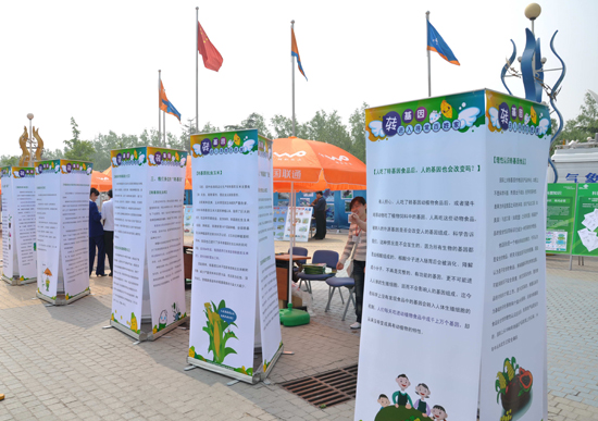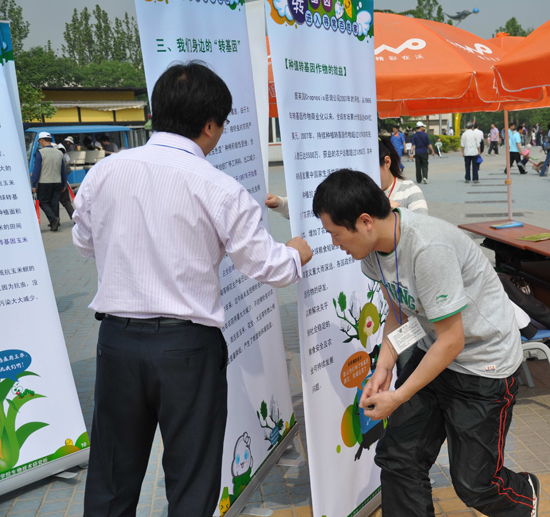 我院由生物技术研究所作为代表参加了本次科普活动。生物技术研究所以“转基因进入寻常百姓家”为主题,结合当前转基因技术的发展和应用,通过通俗的宣传板和发放科普图册等形式,提高了参观者对农业生物技术的兴趣和对转基因技术的认识,使参观者科学地了解了转基因技术的基本概念和在农业生产中的重要作用,更加理性地认识了转基因食品的安全性,使很多参观者消除了对转基因技术和转基因产品的疑虑。通过此次科普宣传活动,不仅使众多的参观者开阔了视野,了解了农业转基因技术的科学性和安全性,作为参与单位,我们也学习到了其他单位在科普宣传工作中的好经验和好作法,为我们今后进一步做好科普宣传工作积累了丰富经验。