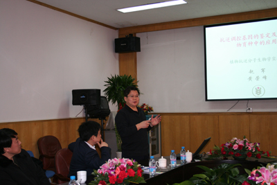 林敏所长主持了会议,并首先就生物技术研究所学科建设、重点研究方向以及“十一五”发展目标等做了汇报。随后,作物分子设计中心主任郭三堆研究员、路铁刚副所长、植物生物技术研究室主任黄荣峰研究员和分子微生物学研究室主任张志芳研究员,分别就棉花分子设计育种、水稻重要农艺性状基因克隆与功能鉴定、抗逆调控基因的鉴定及其在作物育种中的应用以及微生物酶工程研究重要进展向翟院长做了汇报。范云六院士等专家针对人才引进和创新团队建设等问题提出了建设性意见。