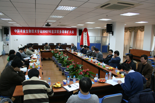 2007年1月23日上午,中国农业生物技术学会2007年在京常务理事扩大会议在学会住所中国农科院生物技术研究所召开??萍疾可锛际醴⒄怪行陌驳啦敝魅?、农业部科教司石燕泉副司长、中国农科院刘旭副院长等领导以及在京常务理事30余人出席了会议。