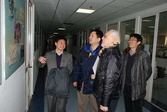 Dixon教授在林敏研究员和程奇博士的陪同下参观了我所环保微生物基因工程实验室林敏课题组及植物抗逆分子生物学实验室黄荣峰课题组。访问期间,翟虎渠院长亲切会见并宴请了Dixon教授;Dixon教授应邀做了题为“Transcriptional regulation of nitrogen fixation in Azotobacter vinelandii”的学术报告,随后Dixon教授饶有兴致地参观了我所廊坊基地,与林敏课题组的师生进行了学术交流和友好联欢,双方就进一步加强生物固氮领域的合作研究达成共识。