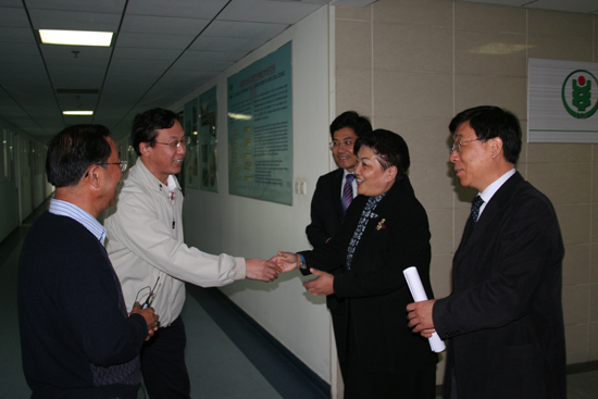 4月28日上午,中国民族贸易促进会执行会长刘延宁一行在中国农业科学院副院长王韧、院办公室主任刘继芳的陪同下到我所考察。 我所张春义副所长首先代表生物技术研究所对刘延宁会长的到来表示欢迎,随后,郭三堆研究员和陈茹梅研究员分别介绍了我所转基因抗虫棉的研究历程、产业推广和转植酸酶玉米研发等方面情况。刘延宁会长认真听取了科研人员的汇报,并就转基因抗虫棉和转植酸酶玉米产业化等问题与科研人员进行了交流。当得知我所自主品牌转基因抗虫棉仅用10余年时间就打破国外转基因棉品种垄断,成功实现国内市场占有率的逆转,并且走出国门为国家创造了巨大经济和社会效益时,刘延东会长频频点头称赞??疾炱诩洌跹幽岢せ拱莘昧宋宜对屏菏坎⒔辛饲浊薪惶?。刘延宁高度赞赏范云六院士专心科研的奉献精神和我所科研人员的自主创新精神,对我所在转基因生物技术领域取得的拥有自主知识产权、具有世界领先水平重大成果给予了高度评价。 刘延宁会长表示,在当今世界科技和经济竞争日趋激烈的形势下,生物技术研究所坚持自主创新,为提高我国农业生物技术国际竞争力、促进农民增收和农业可持续发展做出了重大贡献,希望我所再接再厉,在农业科技创新领域取得新的成绩。