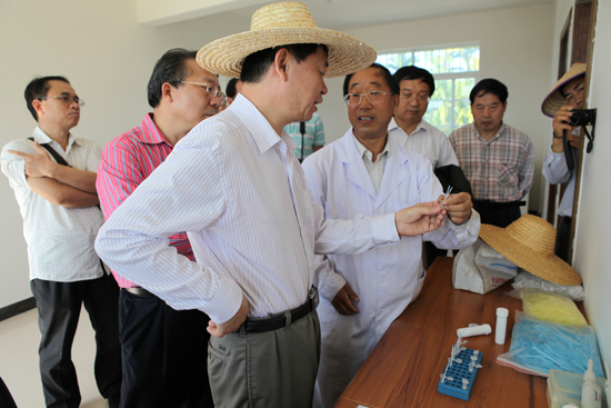 2月12-13日,农业部副部长、中国农业科学院院长李家洋在院科技局王小虎局长、王晓举副局长等人的陪同下,先后到我所海南三亚田独镇和南滨农场南繁试验基地视察。 我所田小薇书记向李家洋院长详细汇报了研究所南繁试验基地的规划建设、运行管理和田间科研试验等情况,李家洋院长深入试验田和实验室,察看转基因抗虫三系杂交棉等作物的田间生长情况,与我所郭三堆研究员就转基因抗虫三系杂交棉的科研进展和产业化等情况进行了深入交流。李家洋院长还详细了解了我所在基地工作的科技人员和研究生等科研和工作情况,并对他们的辛勤工作表示亲切慰问。 李家洋院长对我所能够克服客观条件制约,不断加强试验基地建设,努力改善科研条件,取得以转基因抗虫棉和转植酸酶玉米为代表的重大科技创新成果给予了充分肯定。