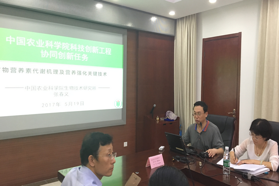 5月19日,由中国农业科学院生物技术研究所主持的“作物营养素代谢机理及营养强化关键技术”协同创新项目工作讨论会在北京召开。协同创新任务总指挥、中国农业科学院副院长李金祥出席会议并讲话,生物技术研究所党委书记王晓举出席会议,生物技术研究所所长林敏致辞,生物技术研究所副所长张春义主持会议。