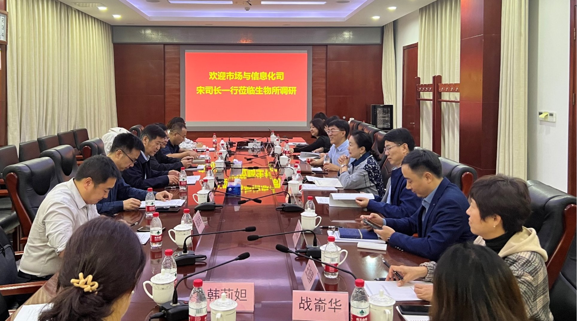 10月17日,农业农村部市场与信息化司宋丹阳副司长、院发展建设局李建国副局长一行来生物所调研全球智能设计育种研发进展,以及国家数字种业(作物育种)创新分中心的建设情况,李红康书记主持会议。