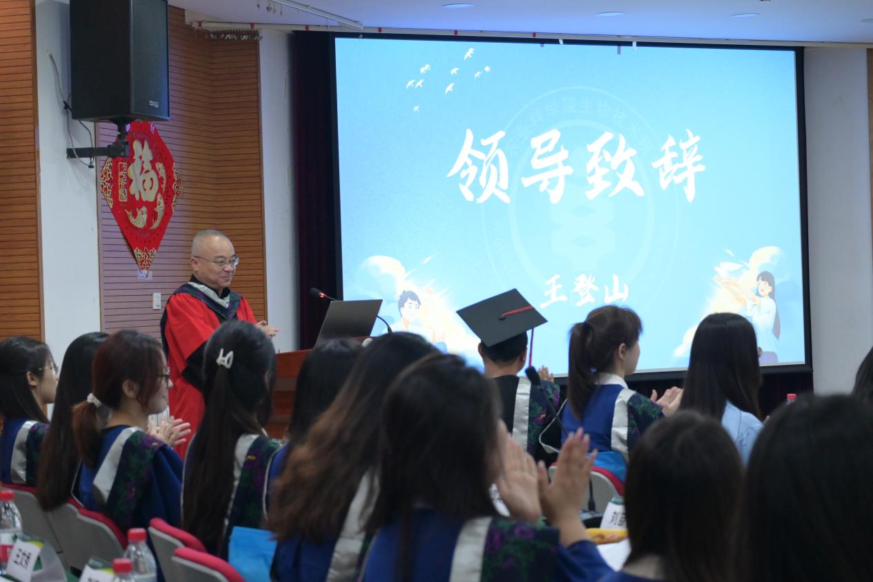 伴随着雄壮的国歌声,毕业典礼正式开始。生物技术研究所所长王登山首先向圆满完成学业的全体毕业生致以最热烈的祝贺和最美好的祝愿。他着重强调了农业科研工作者的神圣使命,勉励毕业生们不忘初心,勇攀科研高峰,为保障国家粮食安全、推动农业现代化贡献青春力量。