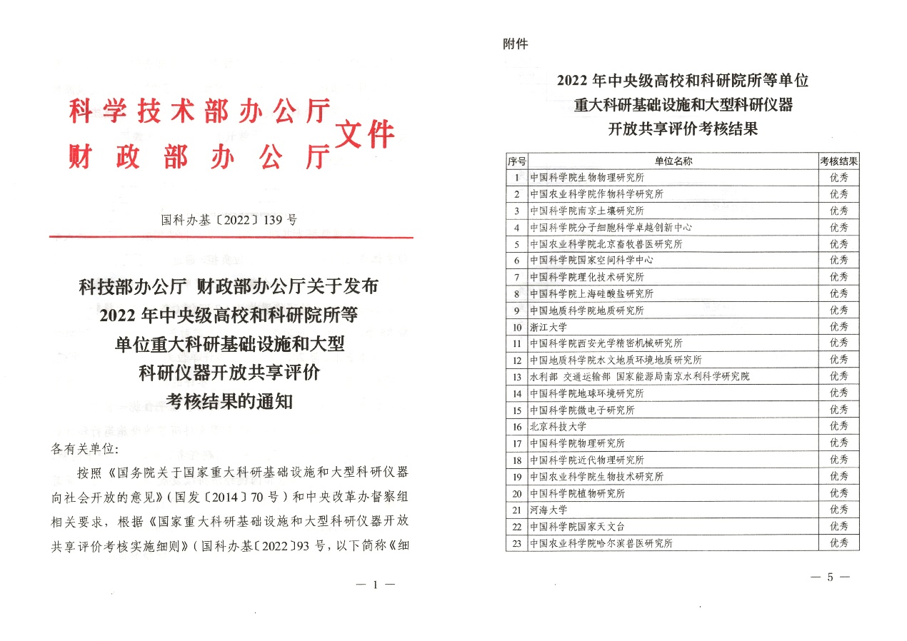 近日,科技部、财政部联合发布了中央级高校和科研院所等单位重大科研基础设施和大型科研仪器开放共享评价考核结果,生物所获评“优秀”,全国排名第19,我院排名第3。