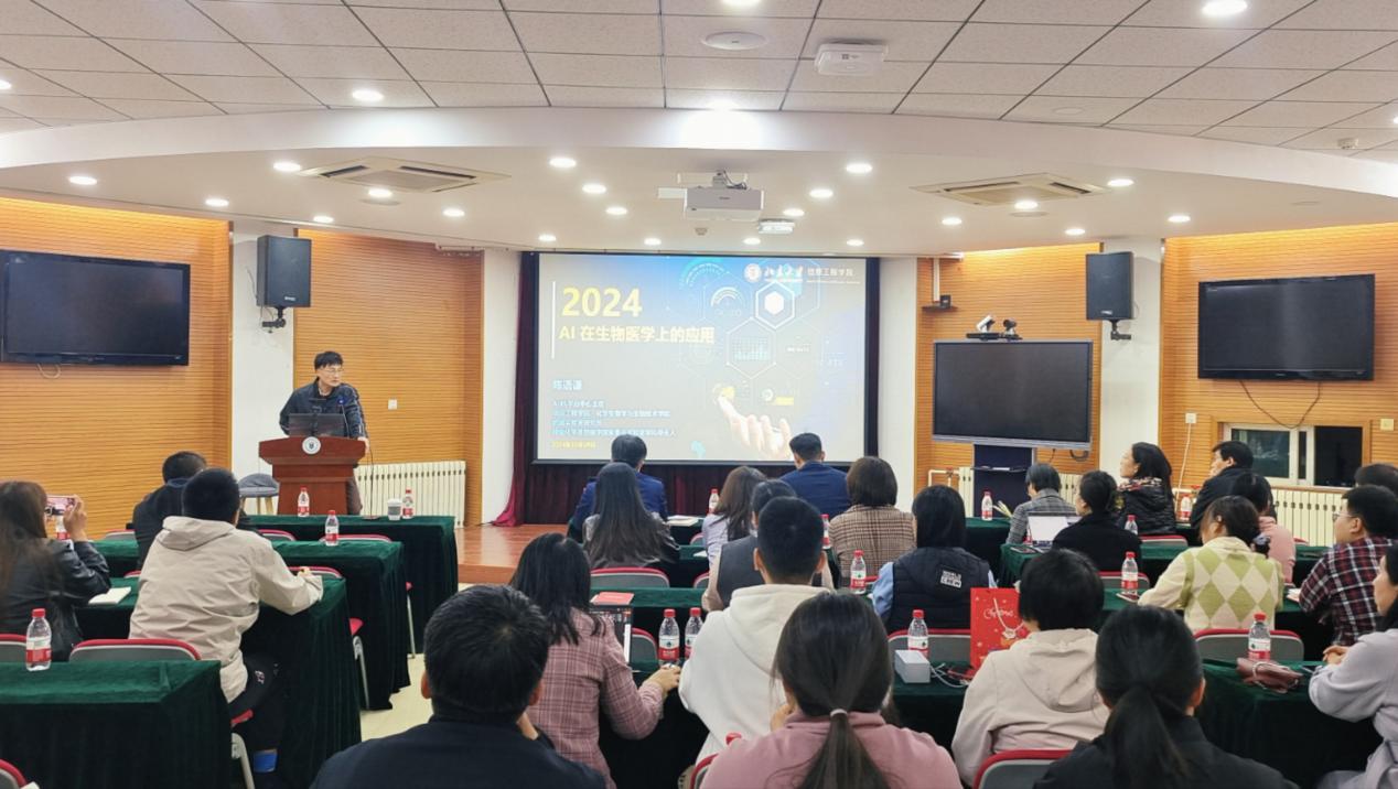陈语谦教授的报告从数据库切入,拓展到蛋白智能设计模型和作用机理,以及智能预测神经网络模型等前沿生物智能设计领域的成果阐述,详细介绍了人工智能目前在智能设计与生物制造领域的应用和发展,展望了人工智能未来的应用,与现场师生就人工智能设计相关问题进行了热烈的讨论和交流。报告让广大师生拓展对前沿领域研究的新思路,启发了生物技术与人工智能技术结合新路径。