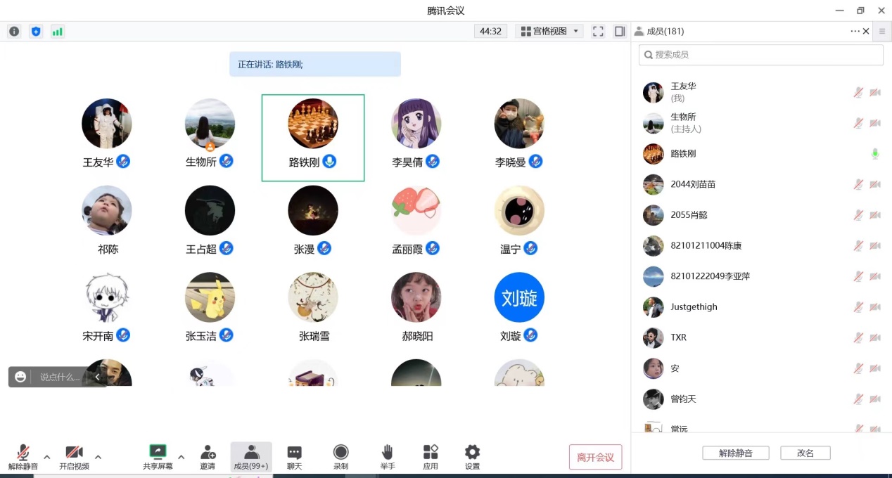 路铁刚副所长首先对严峻防疫要求下坚持居家学习的态度表示肯定,对研究生志愿者的辛苦付出表示感谢,对集中隔离的同学们进行鼓励。路铁刚强调,同学们一定要慎终如始,共同做好疫情防控,充分利用好疫情防控的居家时光,提高研究生论文阅读和写作水平,为后续更好的开展科技创新奠定扎实的学习基础。