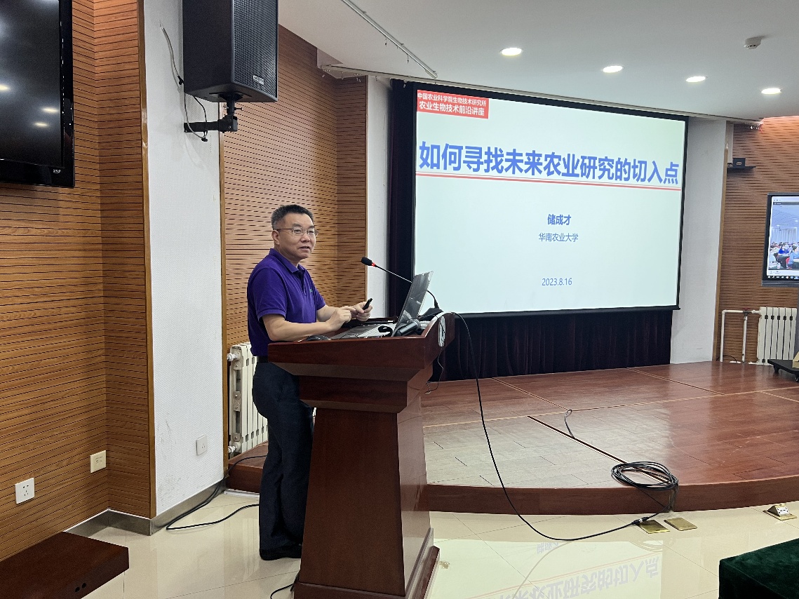 8月16日,生物所举办农业生物技术前沿讲堂,邀请华南农业大学储成才教授做精彩报告。报告会由副所长谷晓峰主持,科研人员和研究生等100余人聆听了报告,并进行了深入交流和讨论。