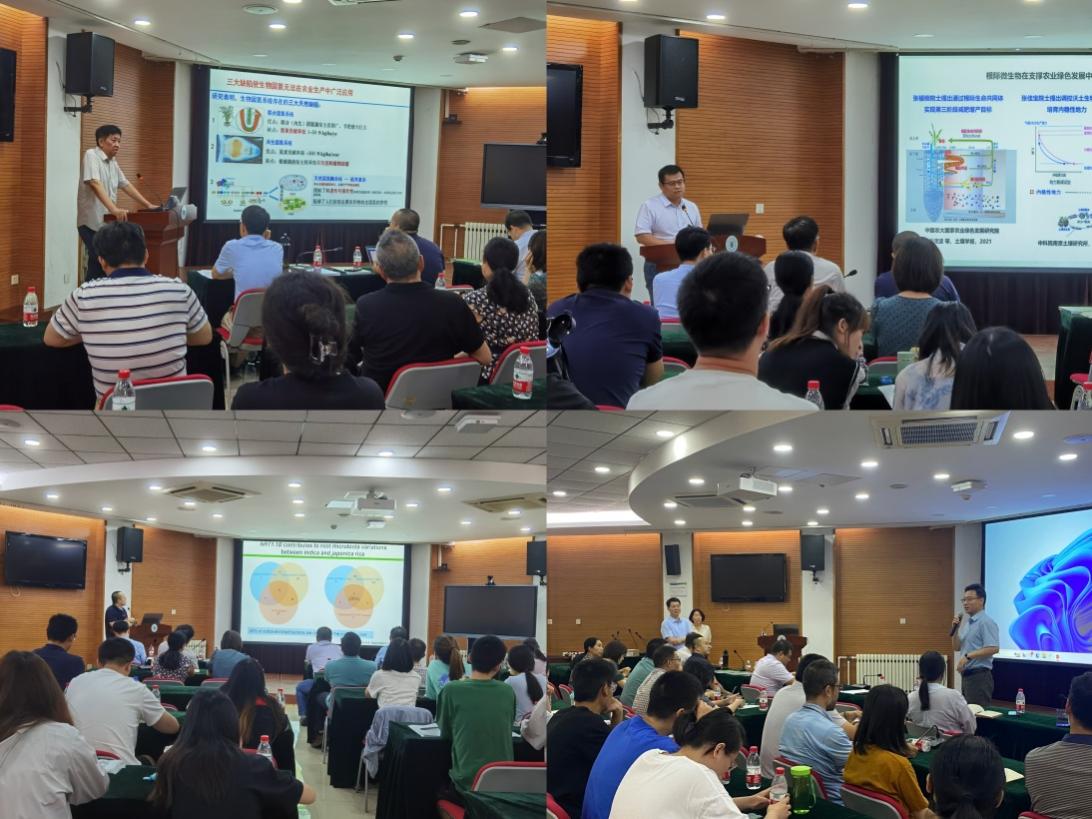 王忆平教授以“固氮合成生物学研究进展”为主题,介绍了生物固氮合成生物学中构建自主固氮农作物和改造联合固氮菌两个重要策略,和构建昼夜温度控制的双生活周期联合固氮工程菌的最新研究进展,以幽默风趣的方式向研究人员传达勤于思考、勇于创新的科研精神,为大家展示了固氮合成生物学领域广阔的研究空间。张瑞福教授做了题为“根际微生物与农业绿色发展”学术报告,讲述了根际微生物与微生物肥料开发的意义,及根际微生物定殖的机制、筛选的优质菌种及其与植物的互作效果,为微生物肥料的开发与应用提供了理论支撑。白洋研究员聚焦“根际微生物组与植物的良性互作”,结合自身的科研经历和心得体会介绍了拟南芥和水稻中根系微生物组的功能、植物对根系微生物组的调控等。三位专家报告精彩纷呈,引起了现场热烈的讨论。