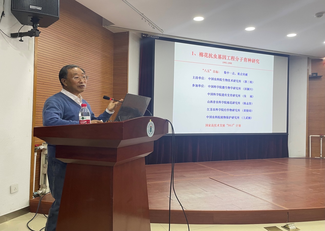 10月14日,生物所举办“传承科学家精神,激发青年创新思想”青年主题活动,邀请“全国五一劳动奖章”获得者、“中国种业十大功勋人物”郭三堆研究员做题为“棉花分子育种-永不停歇的脚步”学术报告会。全所青年职工代表和2022级新生共70人参加。