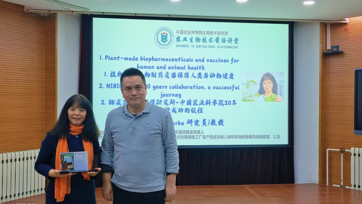 10月31日,生物技术研究所举办了2024年第5期农业生物技术前沿讲堂,挪威生物经济研究所刘继红教授以“Plant-made vaccine antigens for human and animal health”和“NIBIO-CAAS 20 years collaboration, a successful journey” 为题作主题报告。生物所副所长周志刚主持讲座。